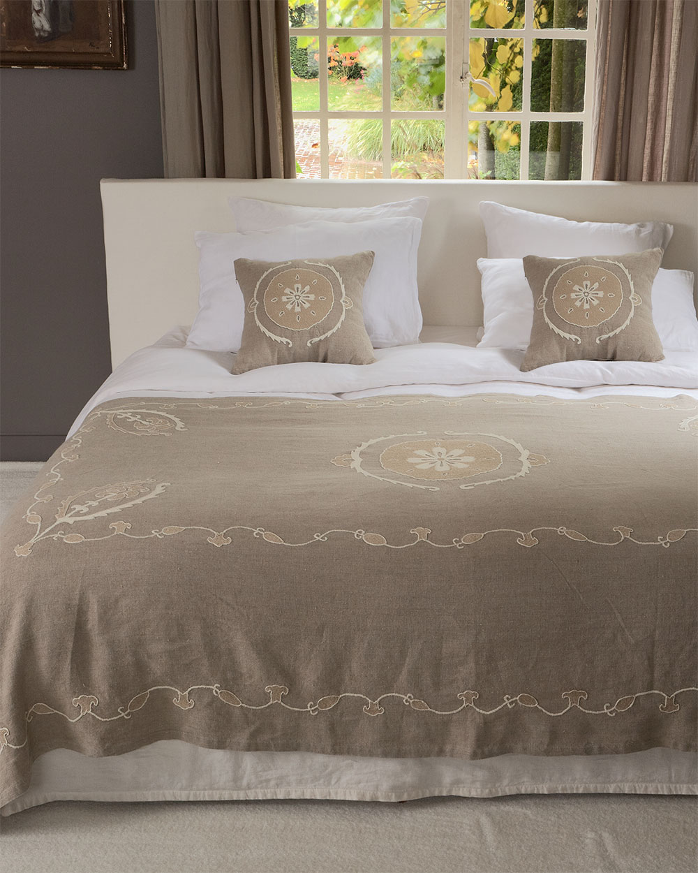 Chez C & the Flowers, chaque coussin en lin brodé naturel