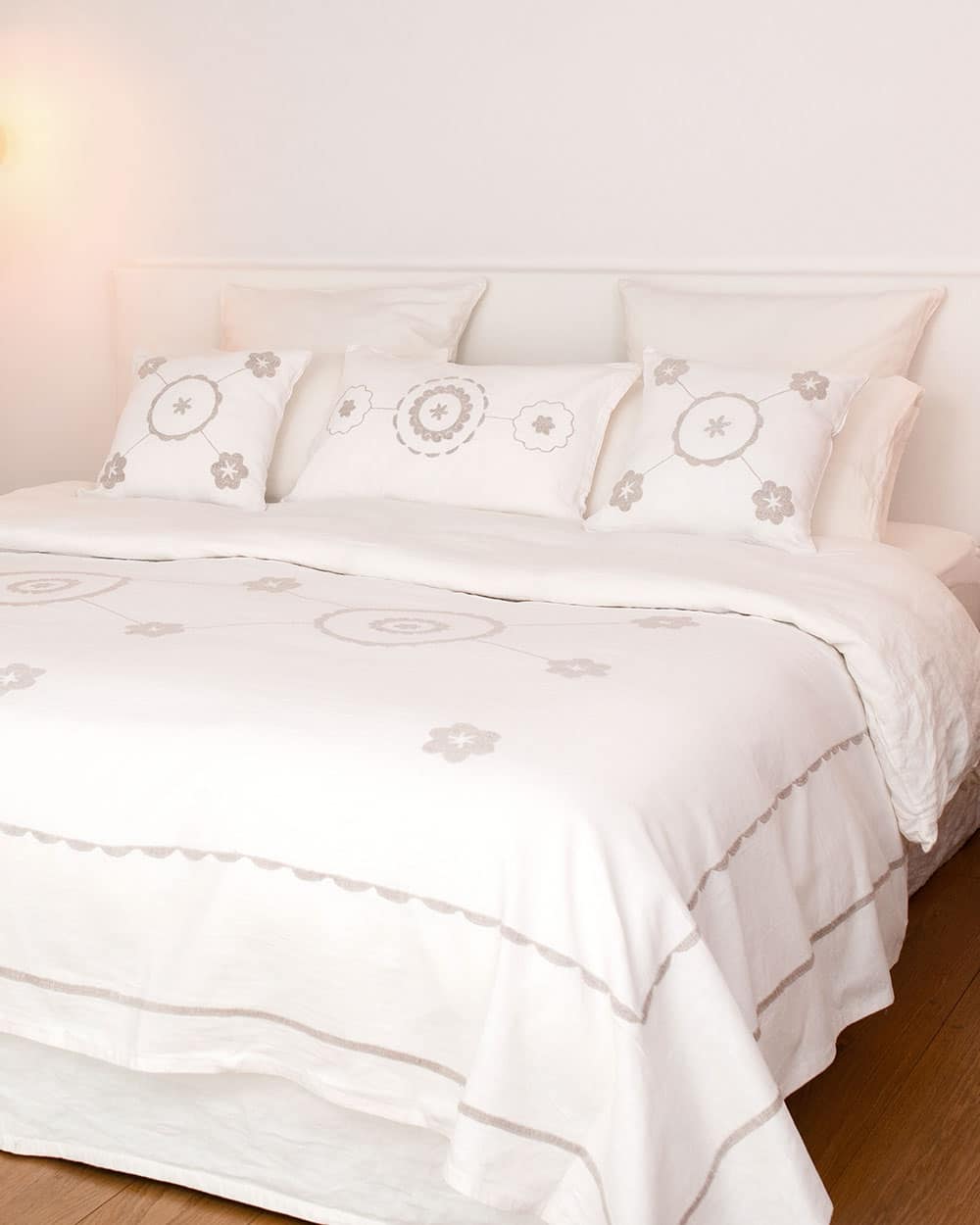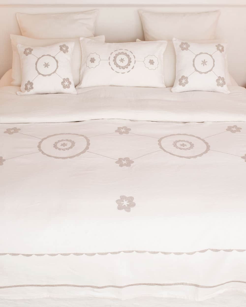 Couvre-lit en lin ivoire brodé main – C & the Flowers