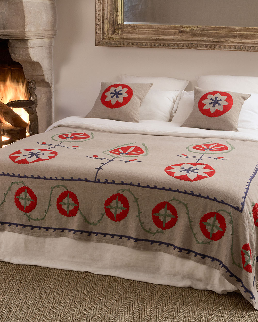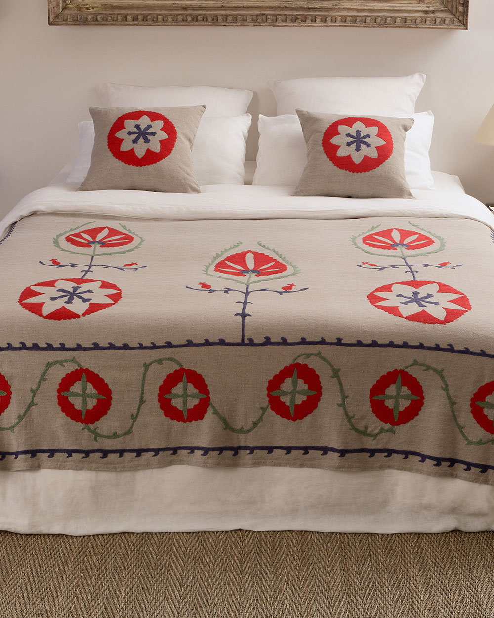 dessus de lit brodé en lin SABZA révèle toute sa lumière. Il peut être complété de coussins assortis pour une harmonie parfaite.